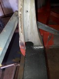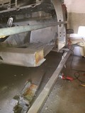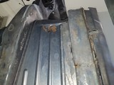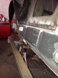 Hier der marode rechte Innenschweller, der wird nach dem Erneuern des rechten hinteren Längsträgers (Banane) komplett erneuert.