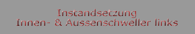 Der rechte Innenschweller wurde nach dem Erneuern des rechten hinteren Längsträgers (Banane), siehe Arbeitsbuch, komplett herausgetrennt. Im Zuge der Längsträgerreparatur wurden in die Karosserie vorher Vierkantrohre zur Versteifung eingeschweisst. Zusammen mit dem rechten Innenschweller wurde auch der teilweise marode rechte Aussenschweller herausgetrennt.