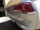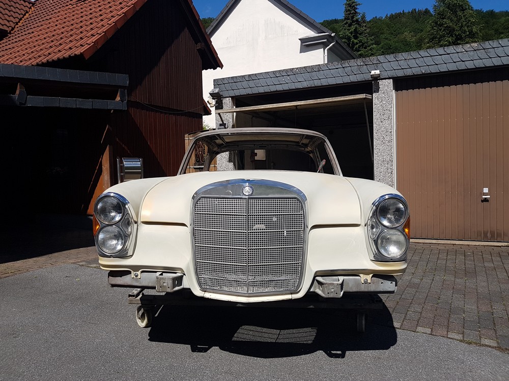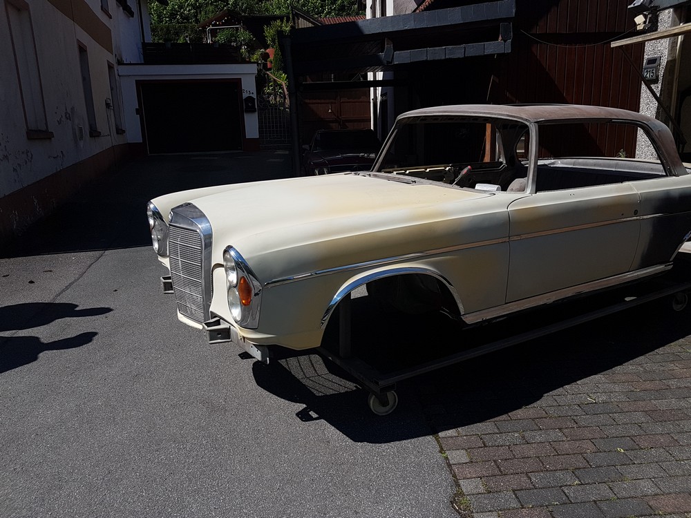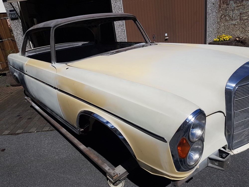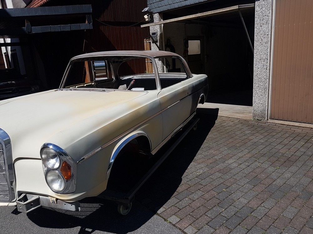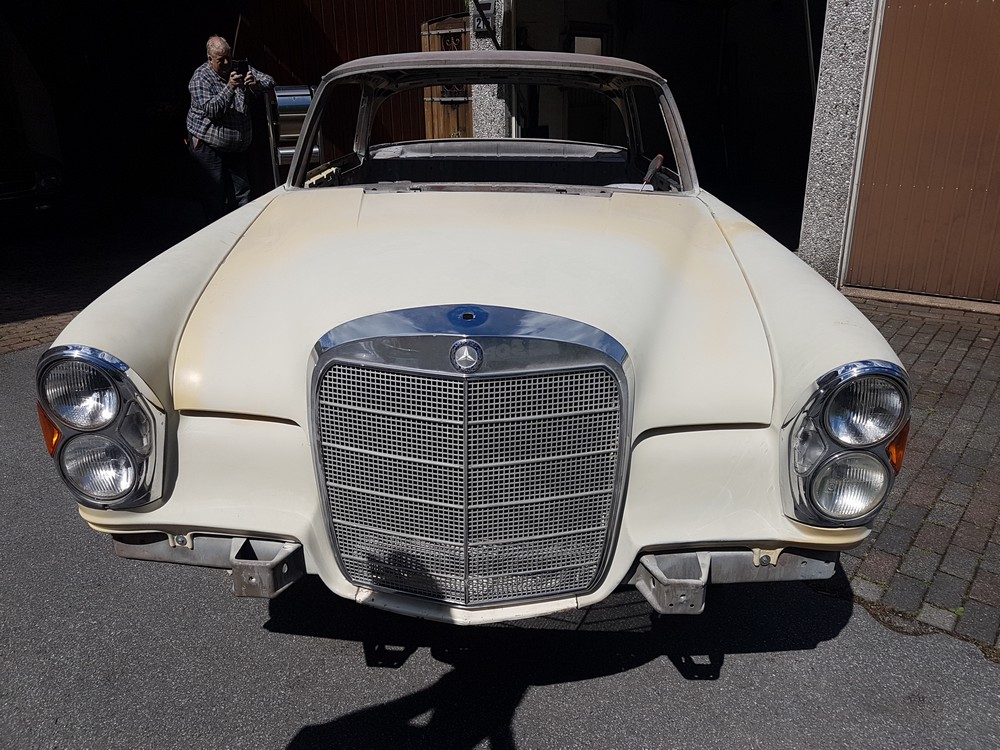 Heute am 13. Juni 2019 habe ich die fertigen Karosserie Instandsetzungsarbeiten beim Karosserierbauer abgenommen. Er hatte soweit wie es ihm möglich war die Spaltmaße von Kotflügeln, Türen, Motohaube und Heckdeckel eingestellt. Anbauelemente wie den Kühlergrill, die seitlichen Sickenleisten, die seitlichen unteren Chromschweller, die Hauptscheinwerfer, die Rückleuchten, etc... hatte er ebenfalls angepasst. Das sah für mich alles gut aus. Alle Chromteile werden im Juli 2019 final an der Karosserie angepasst, wenn diese vom Strahlen, bzw. vom kompletten Grundieren Mitte juli wieder bei mir in der Halle steht.
