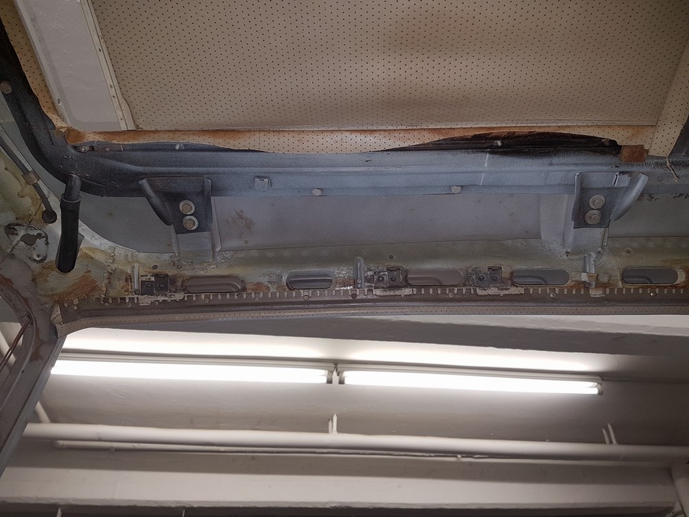 Den Schiebedachrahmen inklusive Schiebedachdeckel habe ich als erstes komplett ausgebaut. Hier ein paar fotos davon.