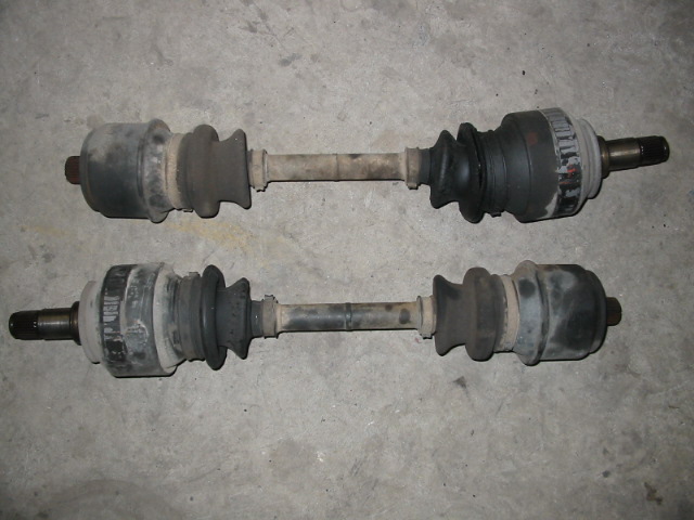 die beiden Achsantriebswellen aus dem Differential nach aussen herausgezogen