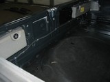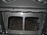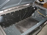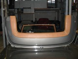 Im Kofferraum zunächst die Rückwand mit vielen Schrauben befestigt, dann die Abdeckklappe für die Reserveradmulde eingebaut. Dann die Antenne montiert und links die neue Schaumstoffplatte aufgeklebt.