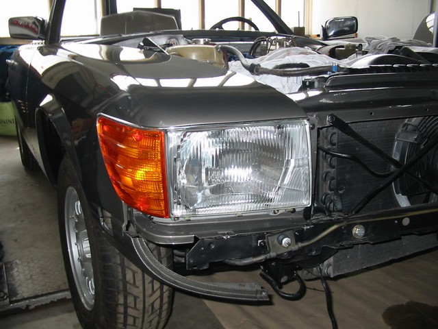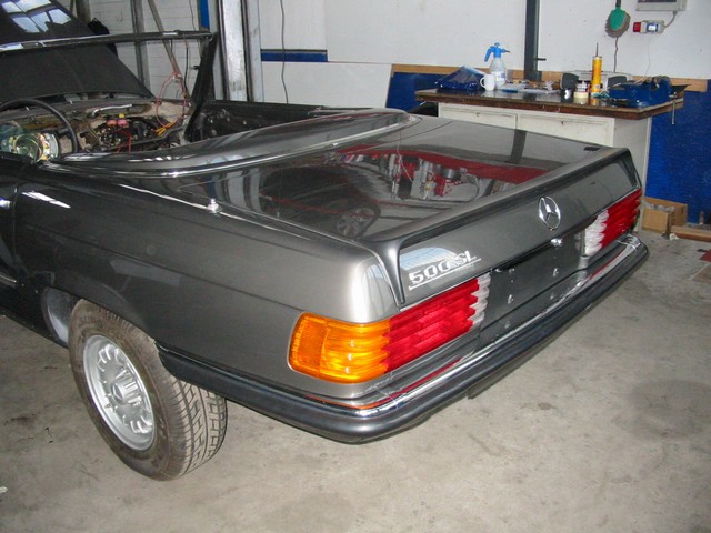Danach wird der SL dann beim Fachmann lackmäßig aufgearbeitet; denn er hat ja während der Restauratinsphase-II doch hier und da so kleinere Blessuren bekommen.