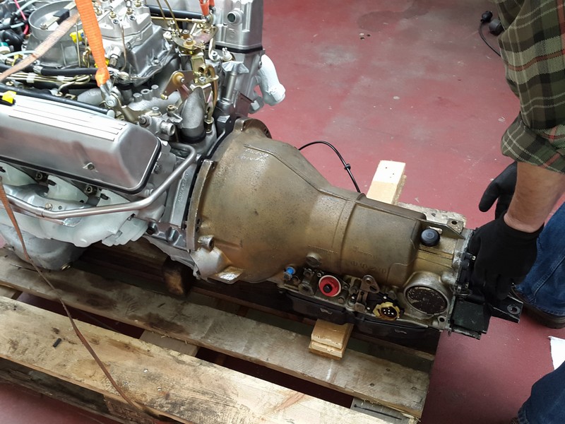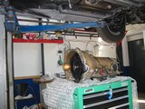 Das überholte Automatikgetriebe habe ich wieder eingebaut, das war trotz Getriebelifter wirklich eine Arbeit für 2 Männer, obwohl wenn es absolut sein müsste ginge es auch alleine, aber wir wollen ja in unserem Alter nicht übertreiben.