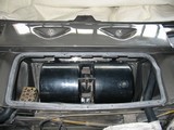 Am Wischwasserbehälter gab es nix besonderes beim Einbau. Ich habe nur die beiden Pumpen für Scheibenwischer und Scheinwerfer in die Dichtungen gesteckt. Dann habe ich den Behälter in den trapezförmigen Halter am Radeinbaublech fest eingeschoben und.........fertig. Später werden noch die Wasserschläuchen an den Pumpen angeschlossen.