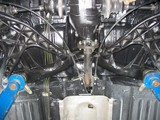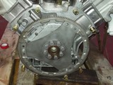Also wie schon gesagt, das Getiebe auf den Lifter gepackt, hochgepumpt und abei genau mit der Glocke am Motor ausgerichtet. Dann weiter hochgepumpt und millimeterweise am Motoranschlussflansch ausgerichtet und letztlich in die oberen 2 Pass-Stücke gedrückt - ja das passte genau, klar natürlich auch das untere Pass-Stück. Jetzt erst oben die 4 Befestigungsschrauben inklusive Unterlegscheiben eingeschraubt, das ging natürlich nur mit einer dementsprechenden Verlängerung.....ganz lang......alle 4 Schrauben eingedreht und leicht angezogen. Dann die unteren 4 Befestigungs-Schrauben mit der Hand eingedreht und ebenfalls leicht festgezogen. Das alles war wirklich "a piece of cake". Nun nur noch die hintere untere Getriebeabdeckung mit 8 Schauben festgeschraubt und dann noch innen die hintere Getriebe-/Motoraufhängung befestigt.