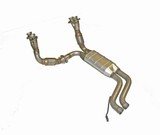 Der GM-Kat ist so konstruiert, er wird vorne mit den doppelflutigen Anschlussrohren an den Abgaskrümmern befestigt. Am Ausgang wird der original Mittelschalldämpfer angeschweisst und am MSD wird der original Endschalldämpfer doppelrohrig aufgesteckt......beide Schalldämpfer sind neue Ebersbächer.