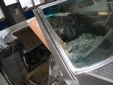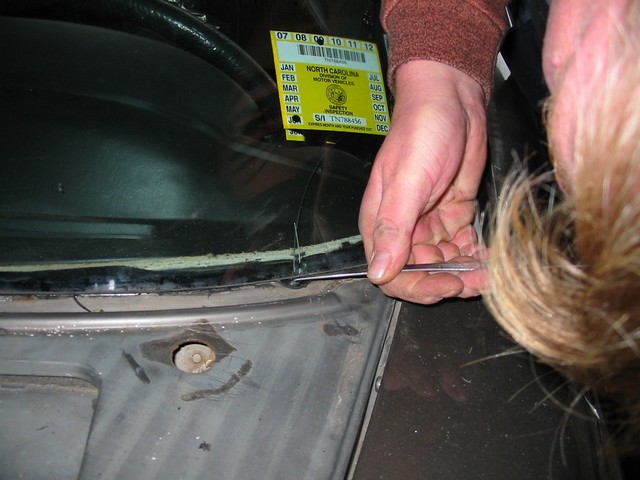Seitenscheibe unten vorsichtig abziehen, sie ist da zunächst