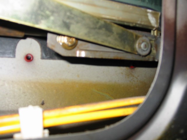 die grosse Schraube im Gelenk vom Gestänge (Türsicherung)