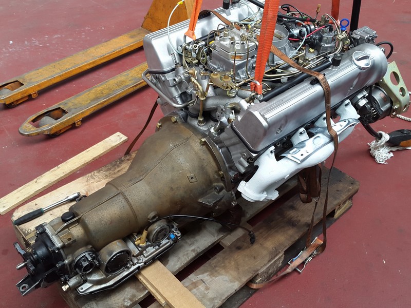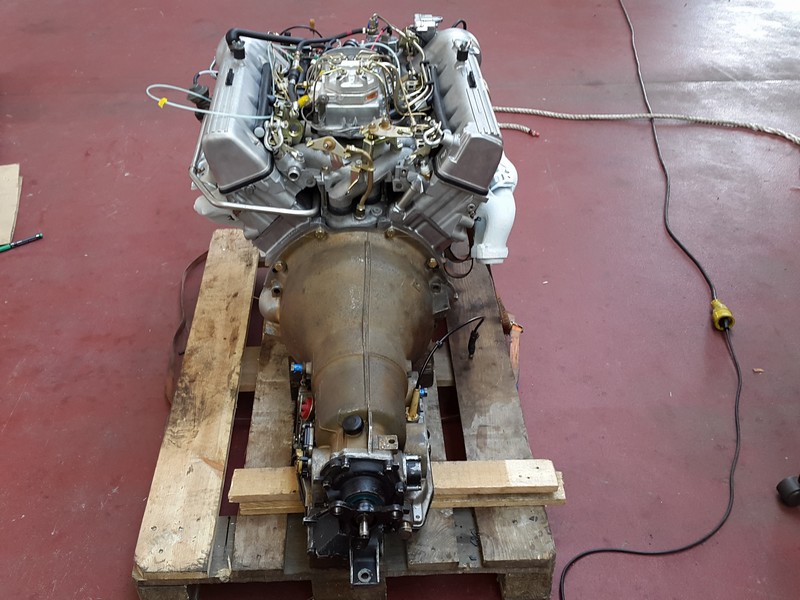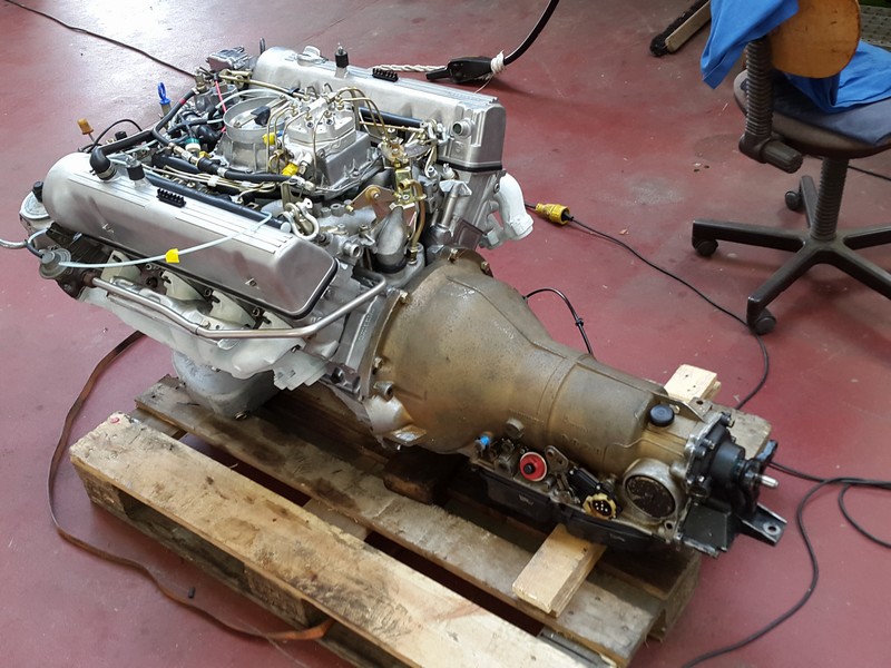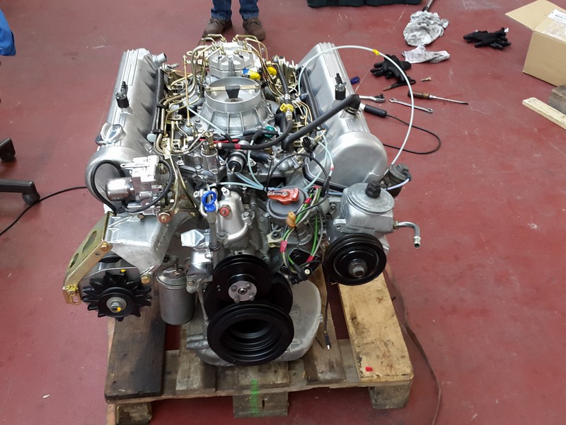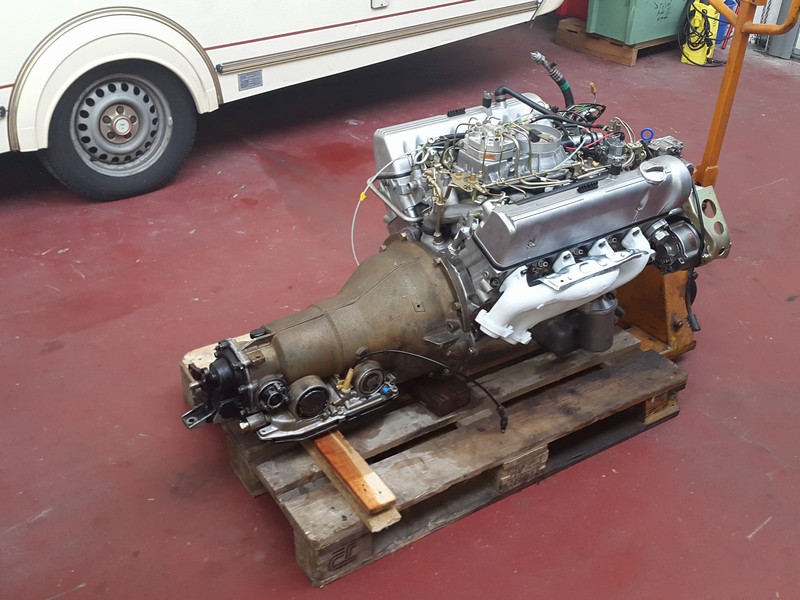 Wir haben zunächst mal die Europalette mit dem V8 Motor (mit