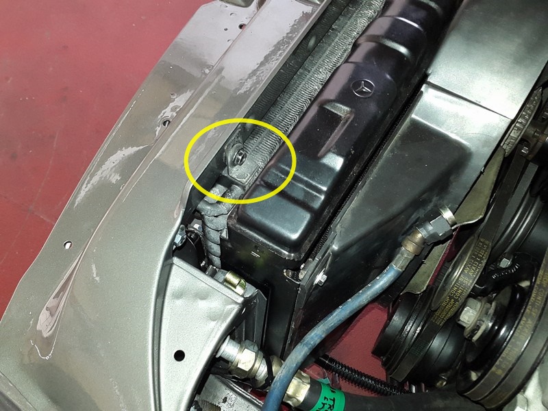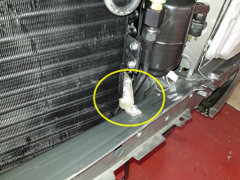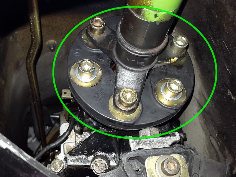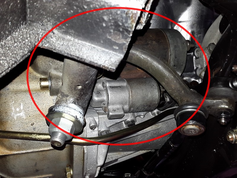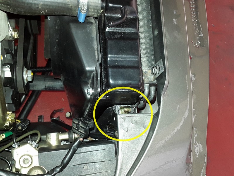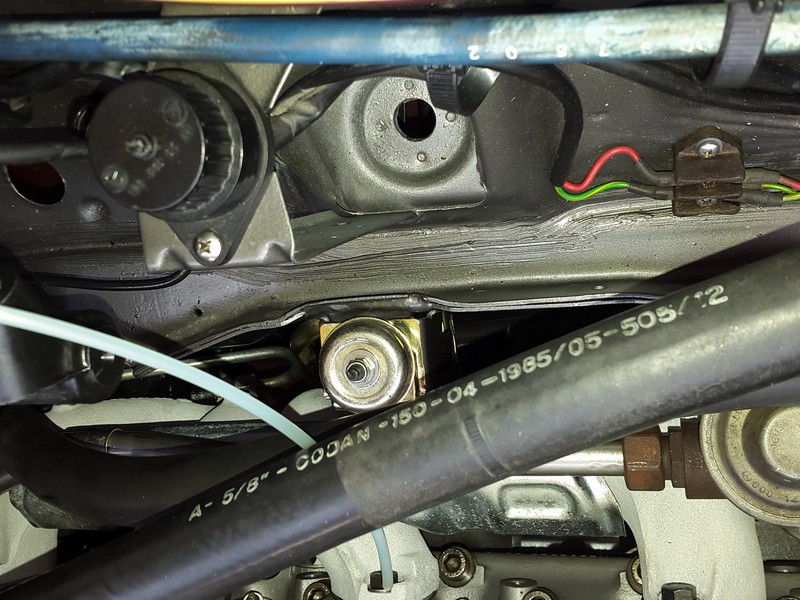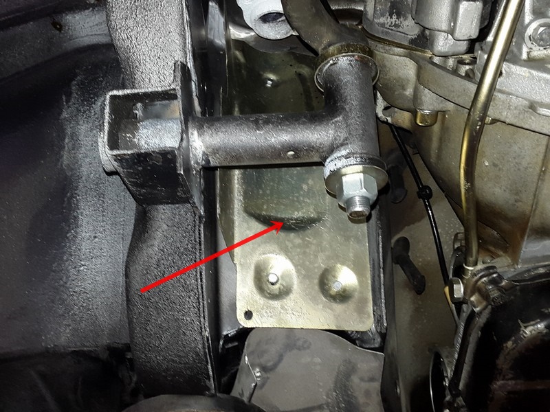 links auf dem Motorlager festgeschraubt sowie der linke Motordämpfer