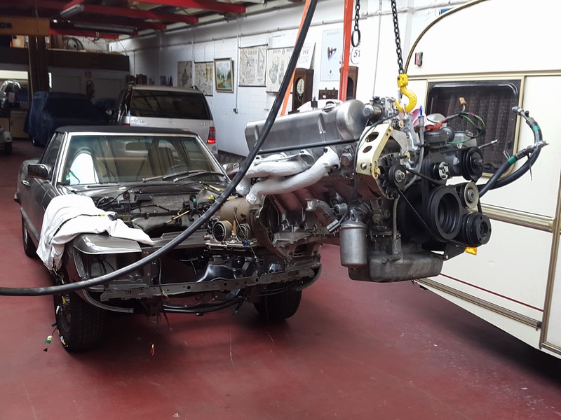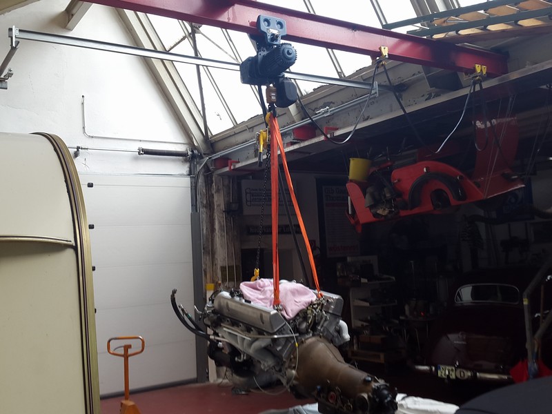 und dann mit der Laufkatze bis über den SL Vorbau angehoben.