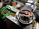 Das grüne Zündschaltkabel vom Zündverteiler zum Zündschaltgerät war noch zugebrauchen, hatte aber wo es am Zündverteiler befestigt ist teilweise die grüne Isolierung beschädigt und darunter liegt ja die Abschirmung. Also wurde ein neues Kabel bestellt (ist so gut wie garnicht mehr zu bekommen) schlappe 200€, aber es wurde erst nach der Motorinbetriebnahme geliefert und dann von uns eingebaut.