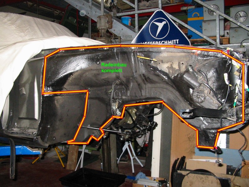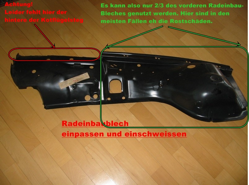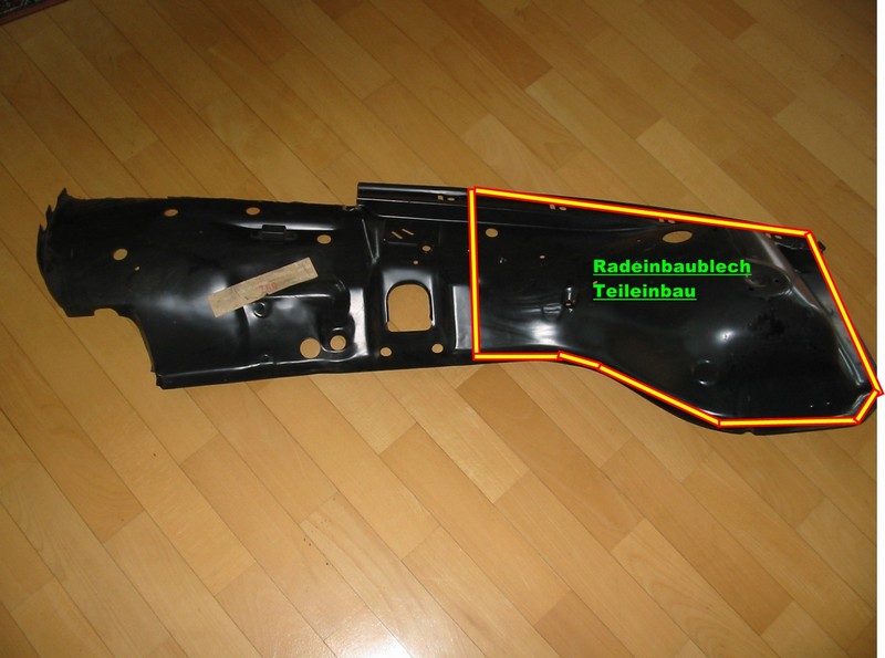 die kleine Teilreparatur. Hier werden das Radeinbaublech vorne hälftig