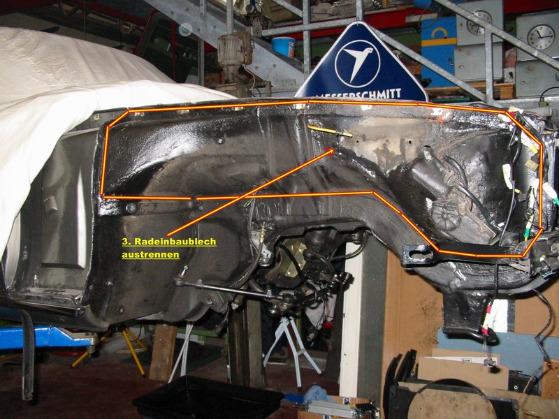 heraustrennen. Dann den neuen Radeinbau einsetzen und einschweissen,