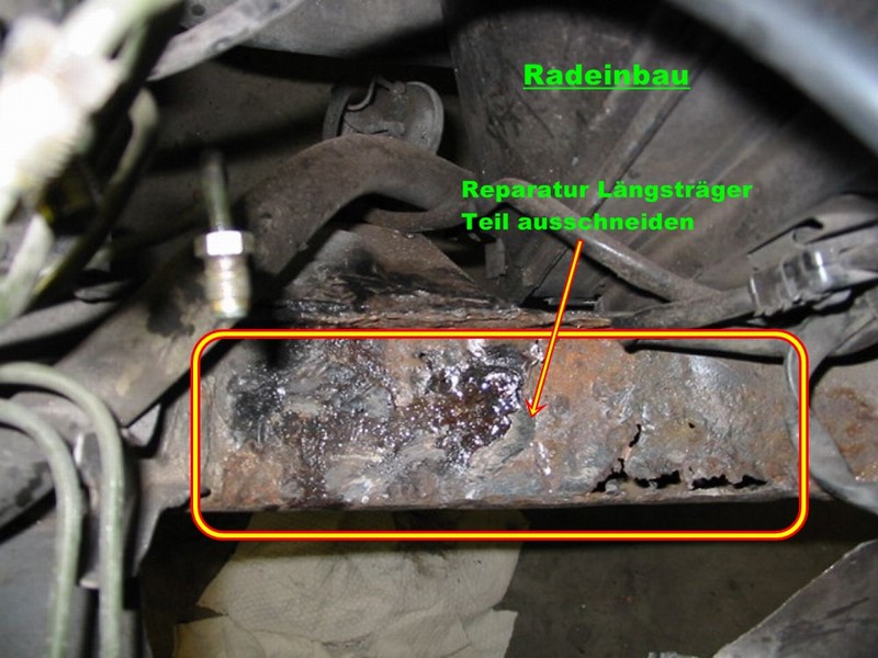 dem Längsträger freilegen und grossflächig ausschneiden,