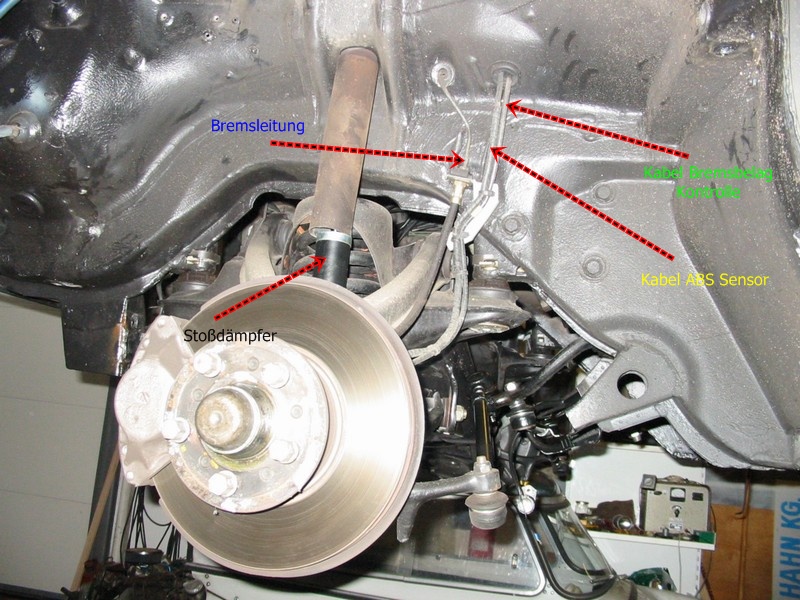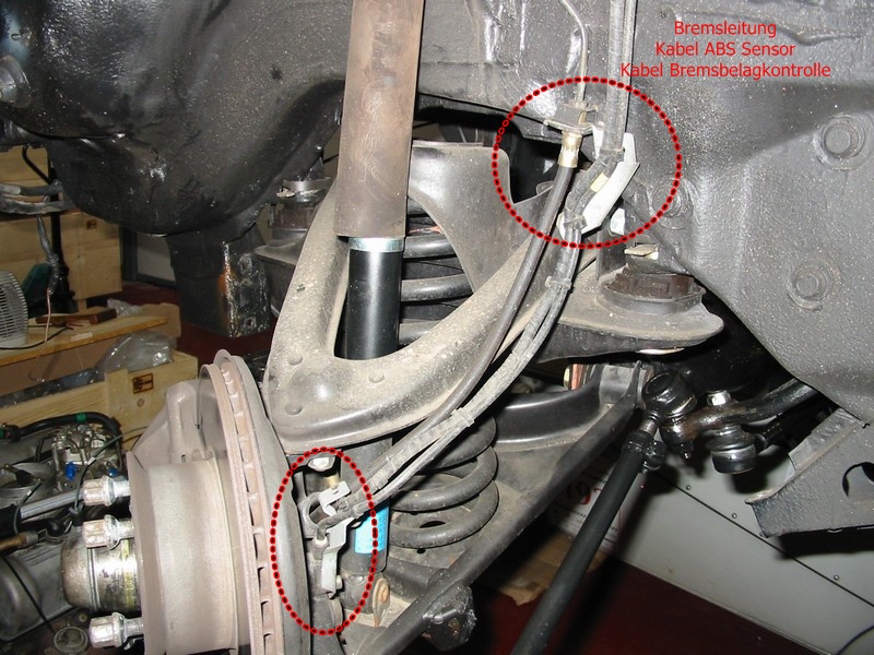 abgelassen und dann die Bremsleitungen am rechten und linken oberen