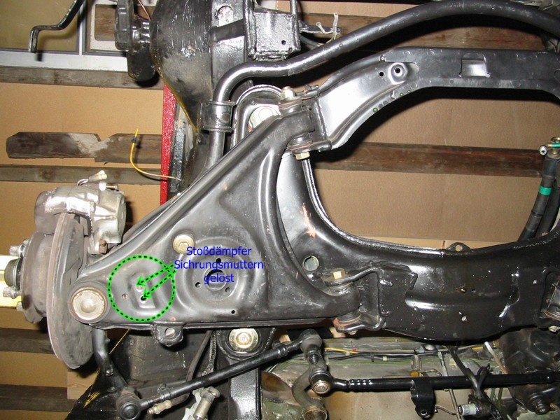Muttern abgeschraubt - die Stossdämpfer werden später beim