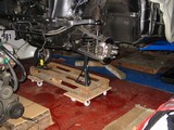 beiden unteren Querlenker auf den darunterstehenden 2 Unterstellböcken