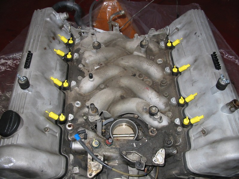 oben auf dem Motor zwischen den Zylinderköpfen. Es besteht aus