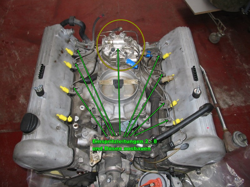 dem Leerlauf-Luftverteieler abgebaut. Alle Einspritzleitungen werden