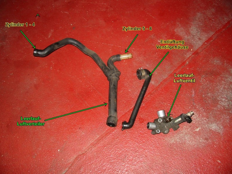 den Leerlaufluft-Verteilerschlauch und den Enlüftungsschlauch